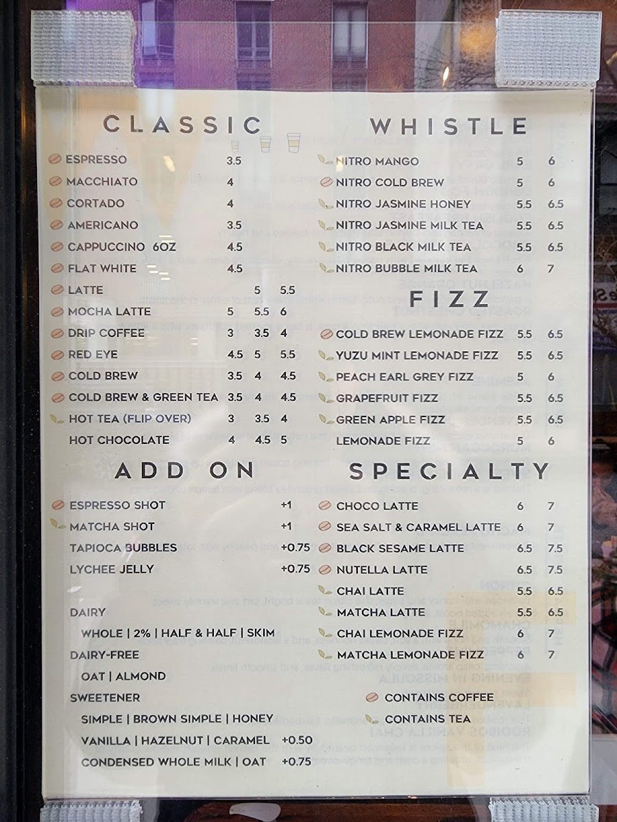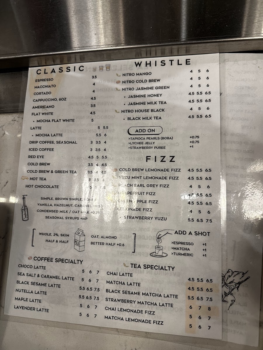 Welcome to Whistle & Fizz - a coffee and tea haven located at 254 Greene St in New York City. This Asian and women-owned establishment offers a plethora of beverages to choose from, including unique seasonal drinks like Pandan Vanilla Cold Brew and Nitro Black Milk Tea with espresso and boba.
